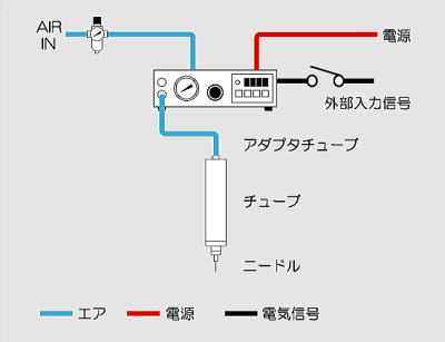 市販のチューブ液剤を装着して、チューブを直接パルスエアーにより加圧し、定量吐出するシステムです。
